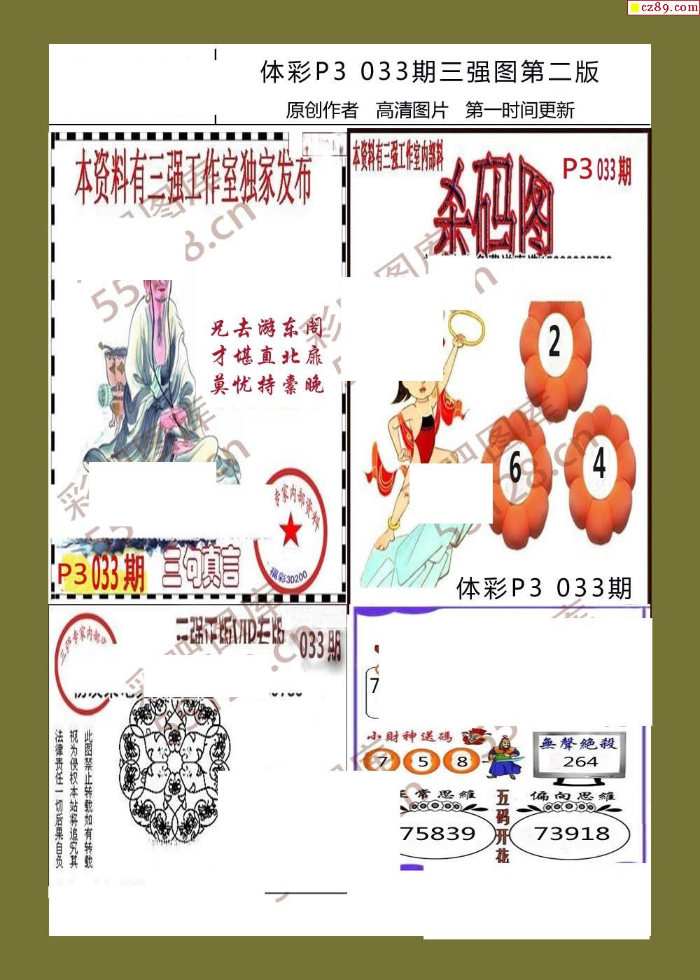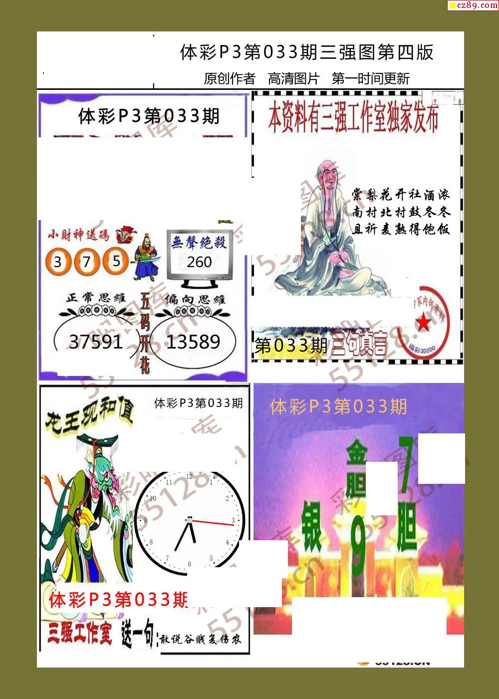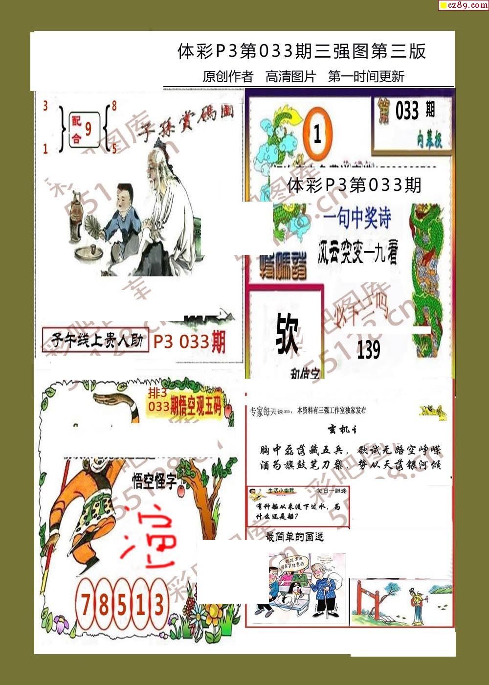 三强图系列033期体彩p3图谜
