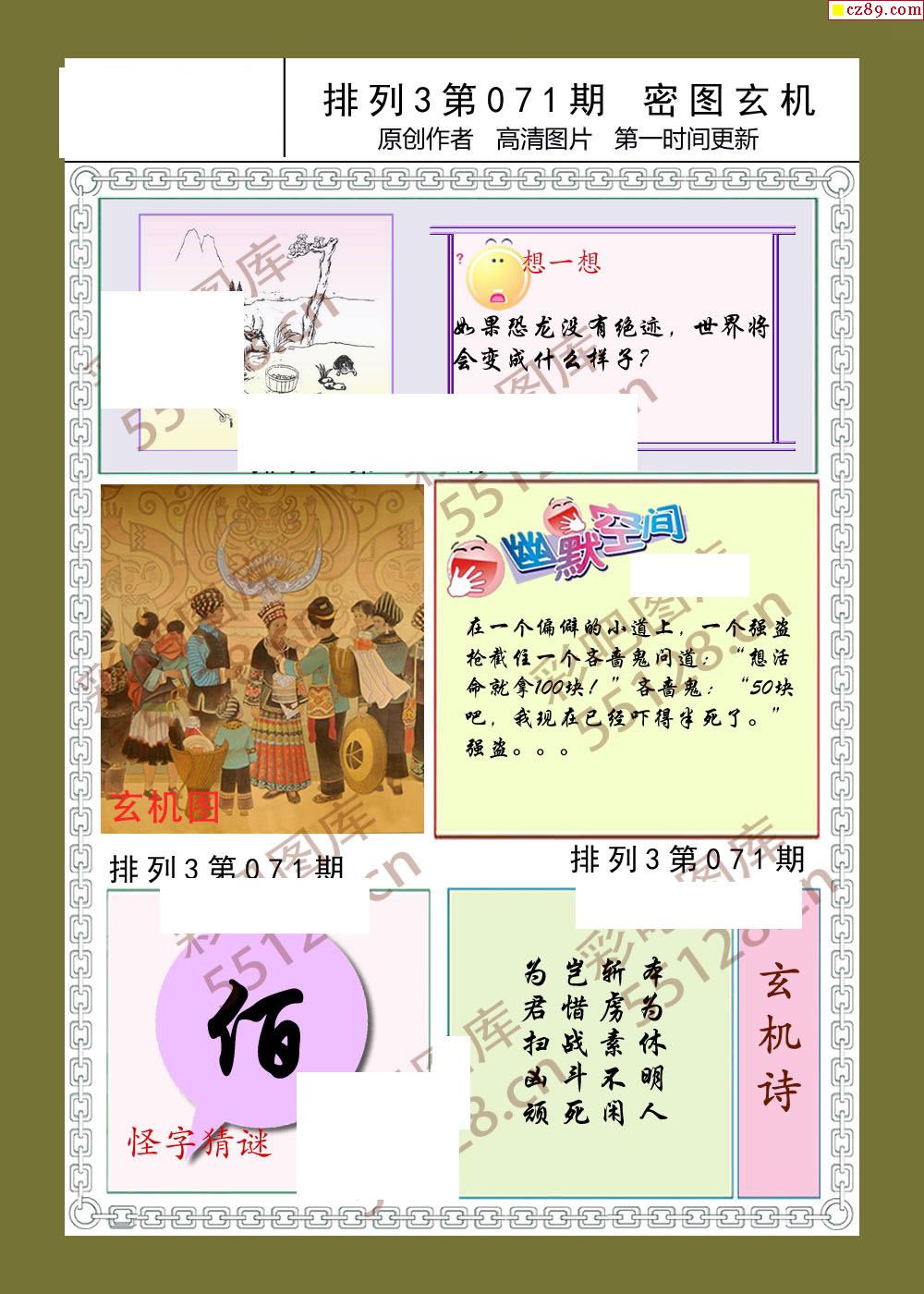 密图玄机071期体彩p3图谜